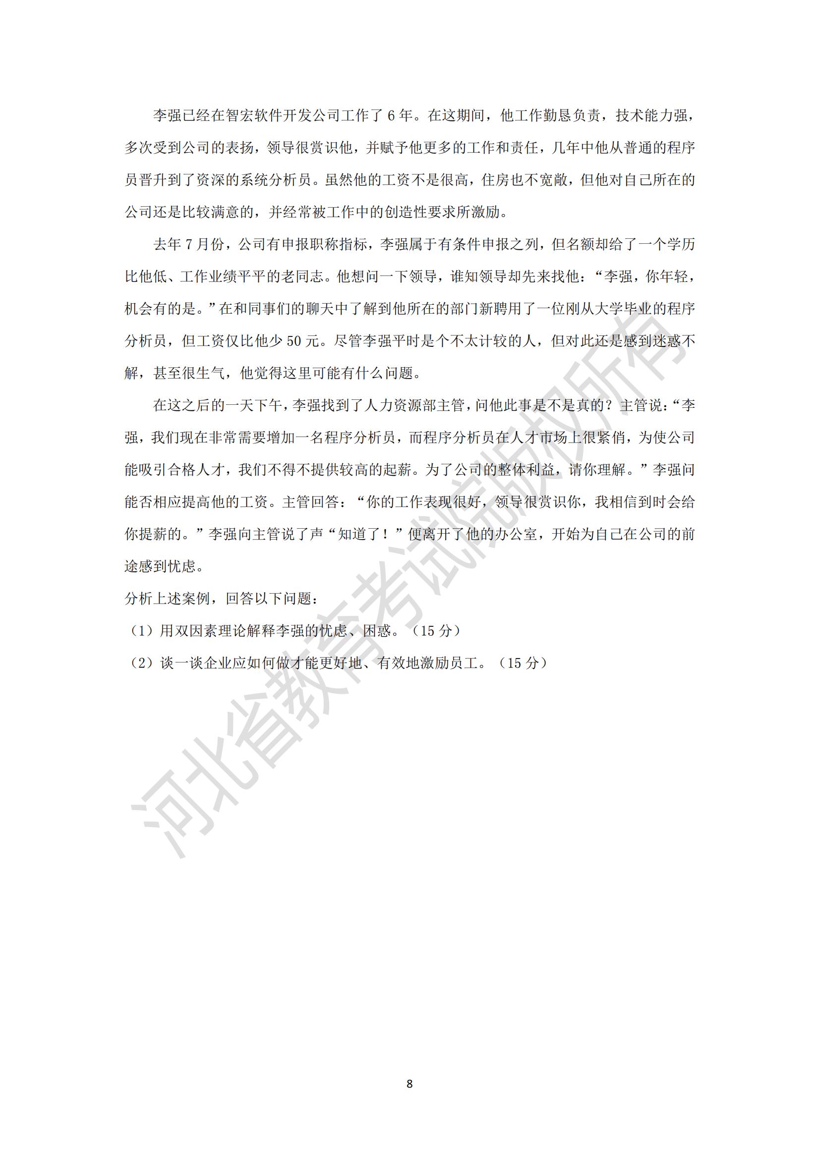 > 河北省专升本考试管理学原理模拟卷真题及参考答案