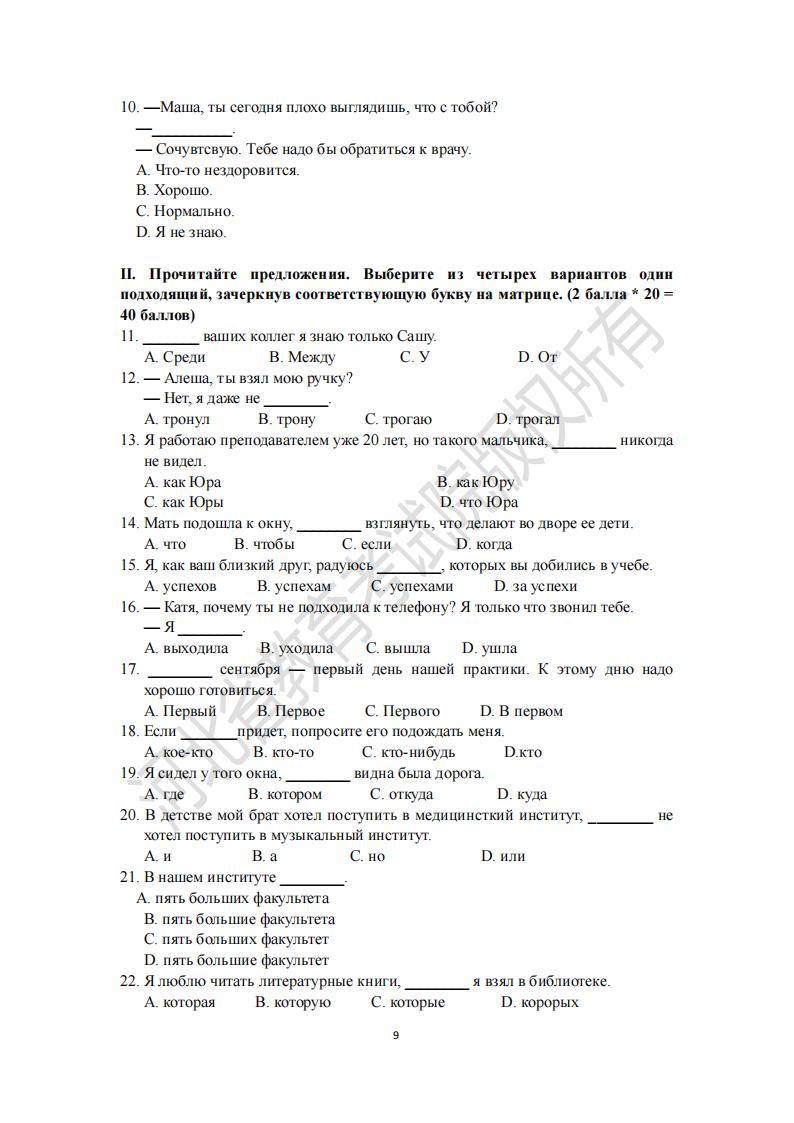 > 河北专升本俄语专业模拟试卷及参考答案
