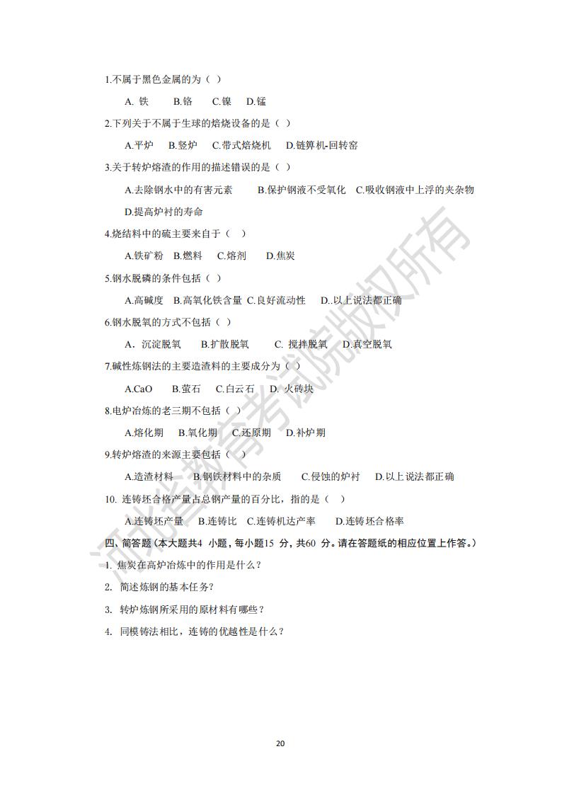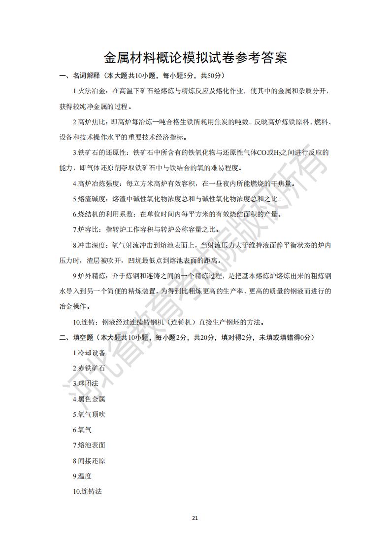 > 2024年河北专升本金属材料概论模拟试卷及参考答案
