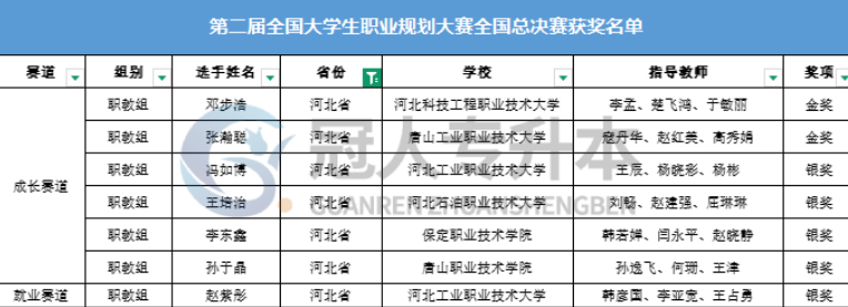 河北省第二届全国大学生职业规划大赛河北省高职院校获奖名单