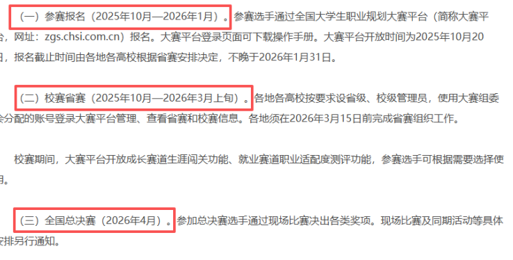 宝子们,报名时间截止到26年1月哦,还有很长的时间~全国总决赛在26年4月进行,大三的宝子可能赶不上,大一、大二的宝子要抓紧时间冲咯~