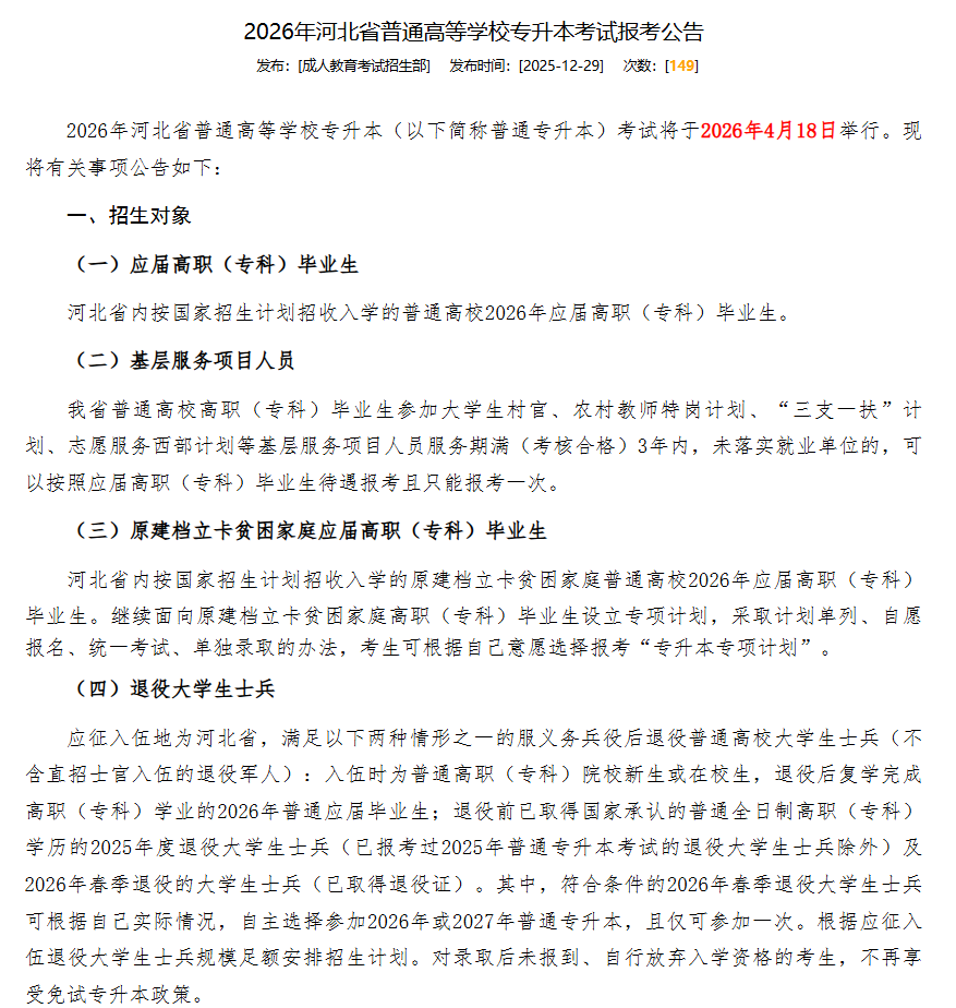河北专升本报考公告到底该注意哪些细节?