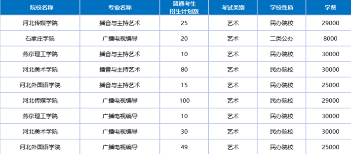 民办院校4所:河北传媒学院、燕京理工学院、河北美术学院、河北外国语学院